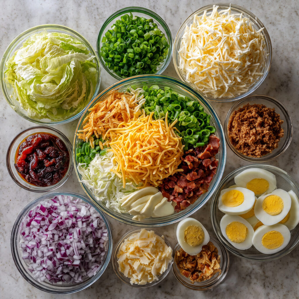 7 layer salad is a classic dish that combines fresh vegetables, creamy dressing, and savory toppings in a beautiful layered presentation. It’s easy to prepare, visually appealing, and full of flavor.