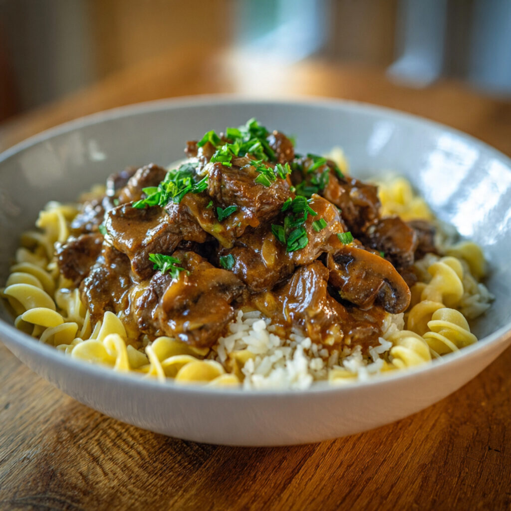There’s something incredibly cozy about a warm bowl of beef stroganoff on the table. The aroma of tender beef simmering with mushrooms and garlic in a creamy, savory sauce fills the kitchen with the kind of comfort that instantly makes a house feel like home.