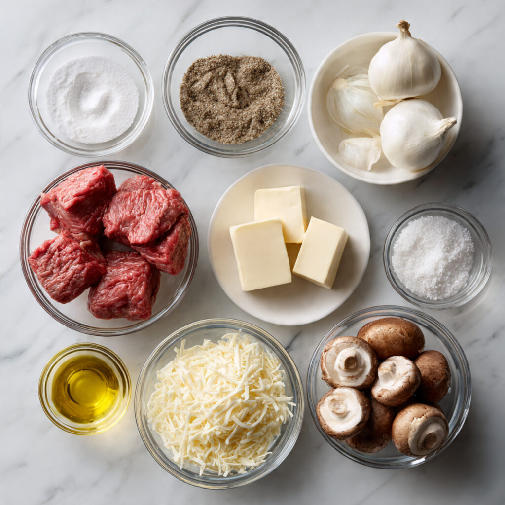 Together, these ingredients create a creamy, savory sauce that coats the tender beef and noodles with rich comforting flavor.