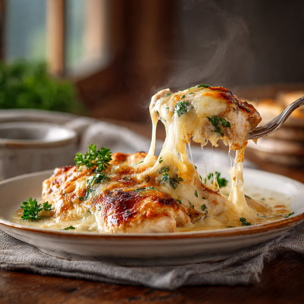 Tender chicken meets creamy sauce and a lightly golden top. Every bite is juicy, smooth, and deeply satisfying.