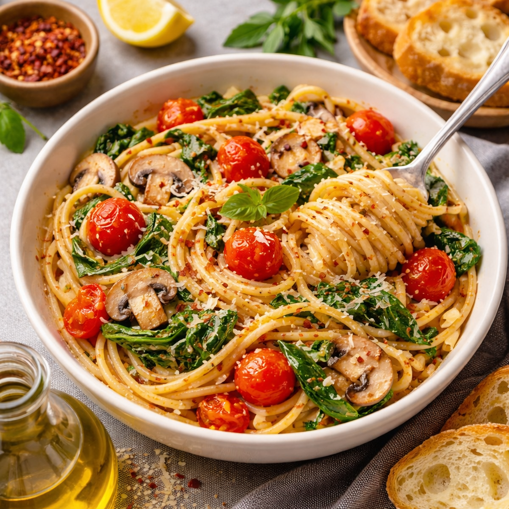 Everything cooks together in one pot, allowing the pasta to absorb garlic, herbs, and tomato flavors as it simmers. The result is a deeply flavorful dish that tastes like it took hours to prepare.
