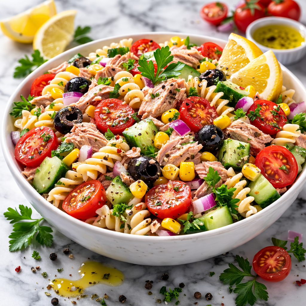 A creamy, comforting pasta salad filled with flaky tuna, tender pasta, and crisp vegetables. Perfect for potlucks, picnics, and quick family meals.