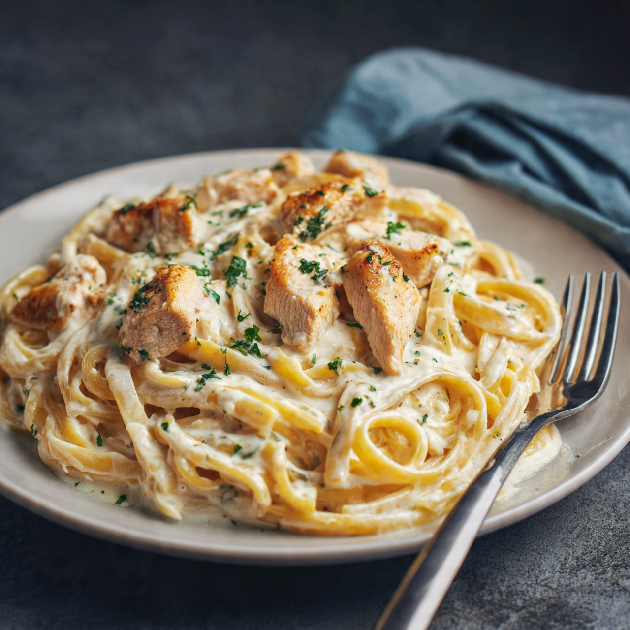 A rich and creamy pasta dish made with tender chicken, buttery garlic sauce, and parmesan cheese. Perfect for cozy dinners, busy weeknights, or family gatherings.