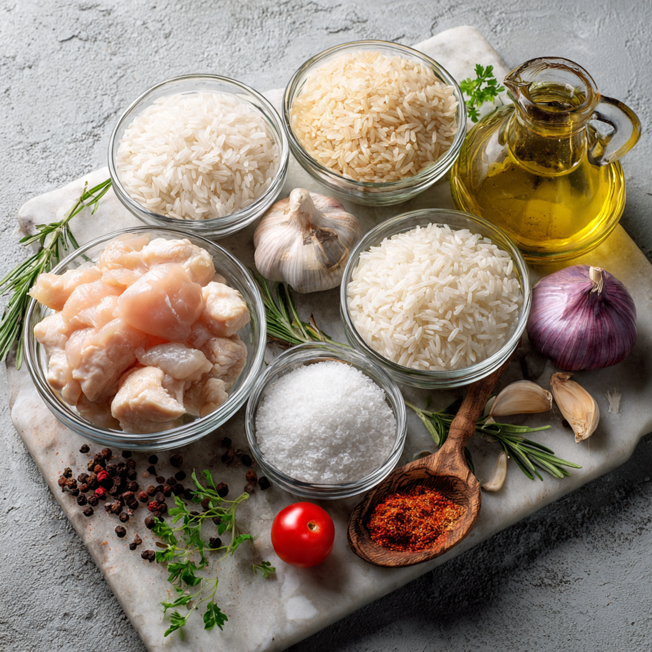 Savory chicken, aromatic garlic, onion, and gentle herbs create a balanced flavor that feels both rich and light. The combination is comforting without being too heavy.