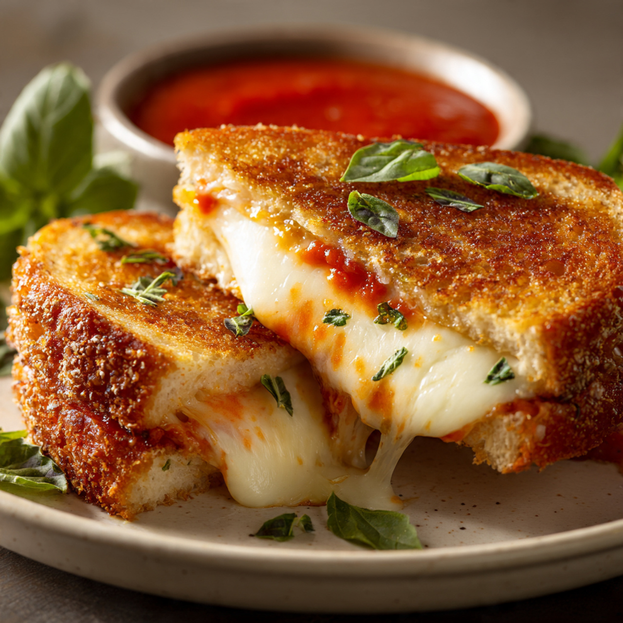 This sandwich combines melty mozzarella, tangy tomato sauce, and savory toppings for the perfect flavor harmony. Each bite is rich yet balanced, delivering classic pizza flavors in a cozy grilled cheese form.