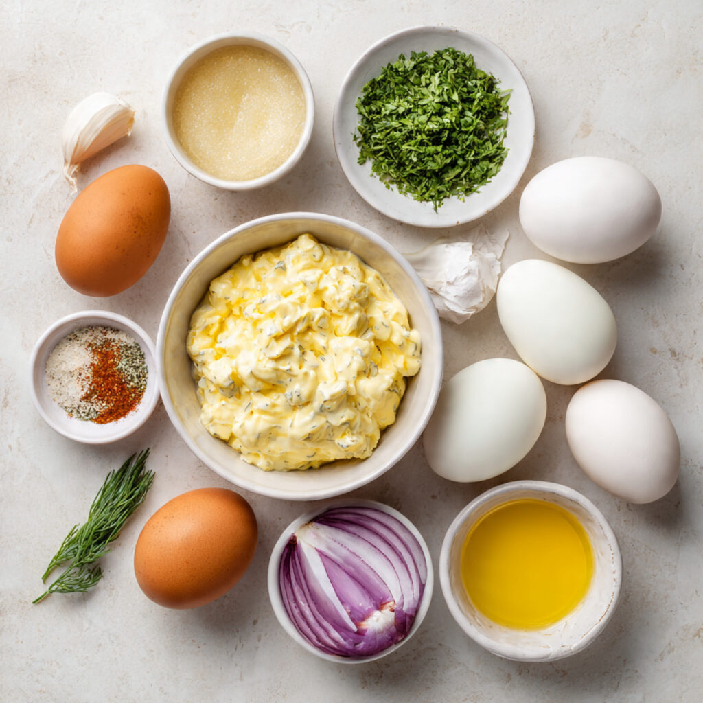 These simple ingredients blend to create a creamy egg salad with balanced flavor and texture.