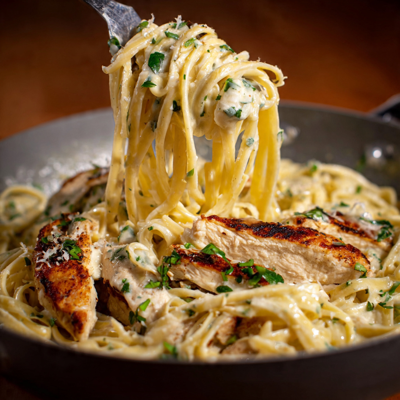 A rich and comforting pasta dish made with tender chicken, creamy Alfredo sauce, and perfectly cooked fettuccine. Perfect for cozy dinners, gatherings, or satisfying weeknight meals.
