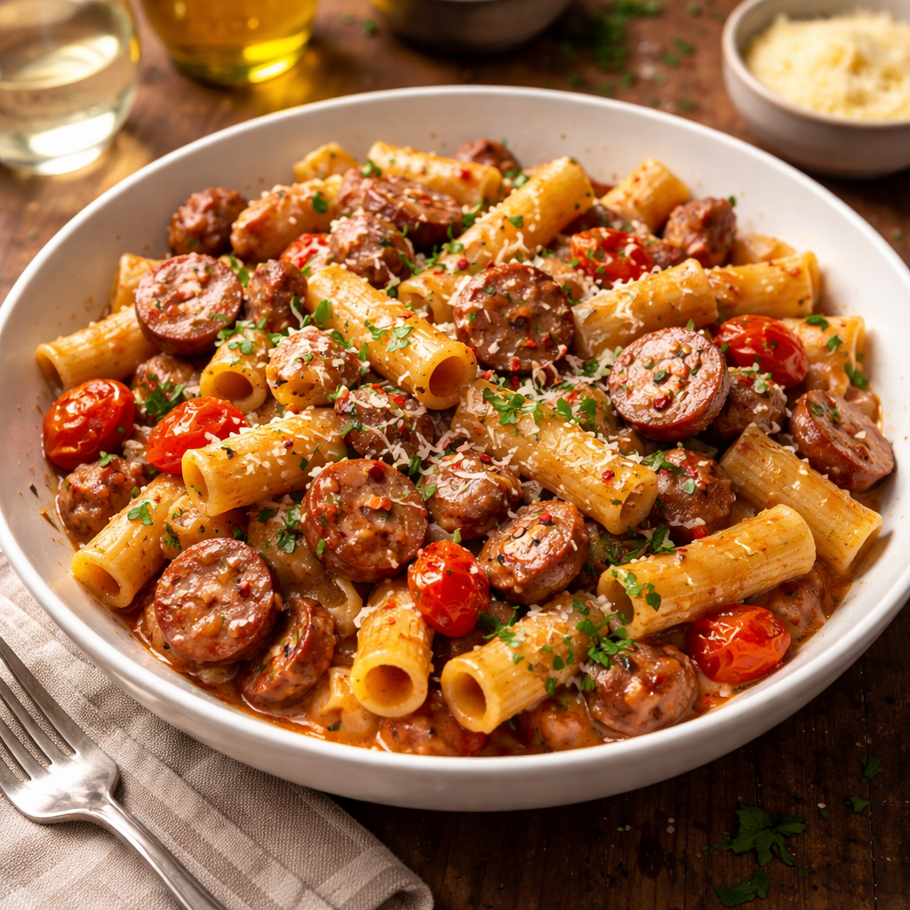 A warm bowl of sausage pasta has a way of bringing comfort to the table. The creamy sauce, savory sausage, and tender pasta combine into a dish that feels hearty, satisfying, and perfect for sharing.