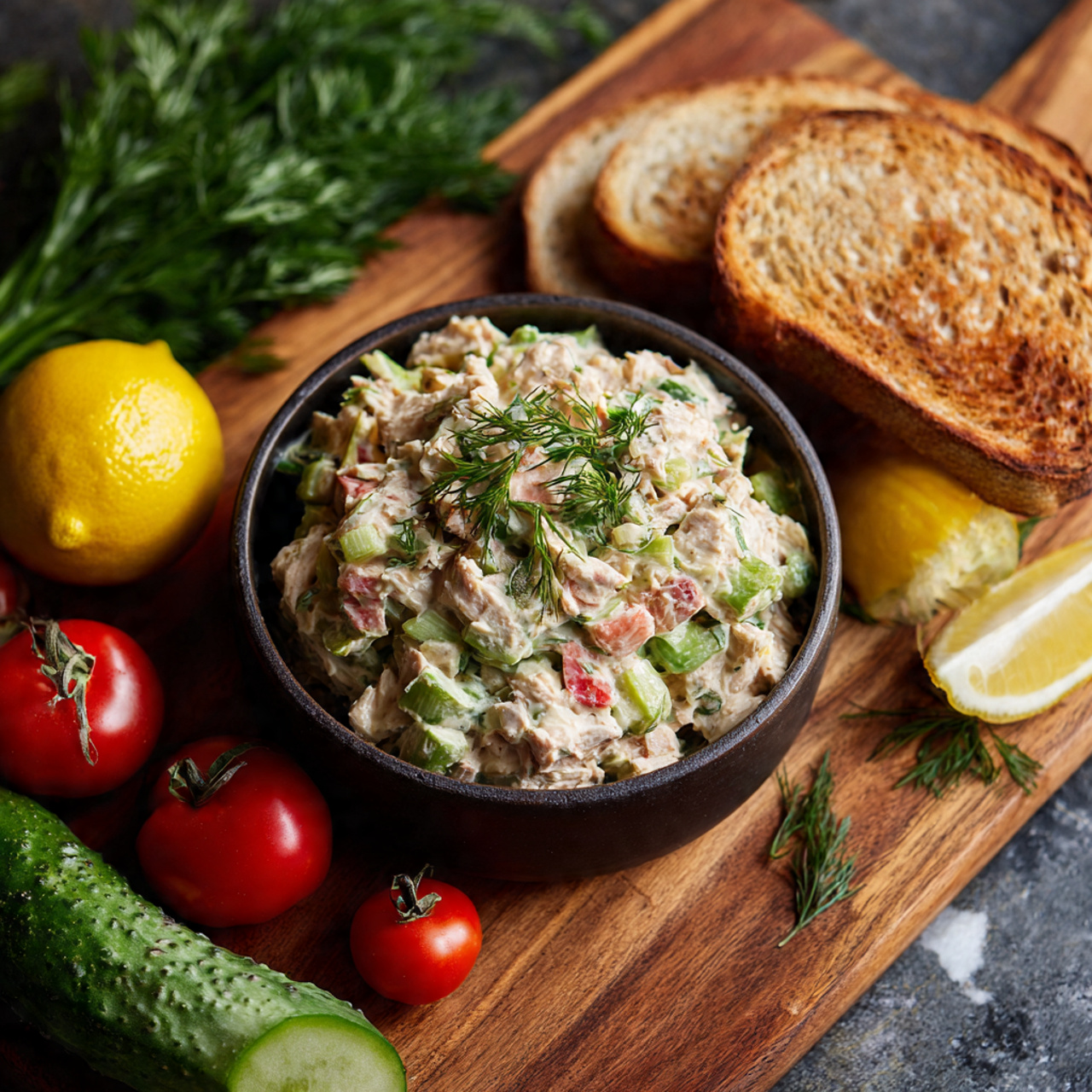 The creamy dressing wraps gently around the tuna, while lemon and mustard add a subtle tang. This balance keeps the salad rich without feeling heavy.