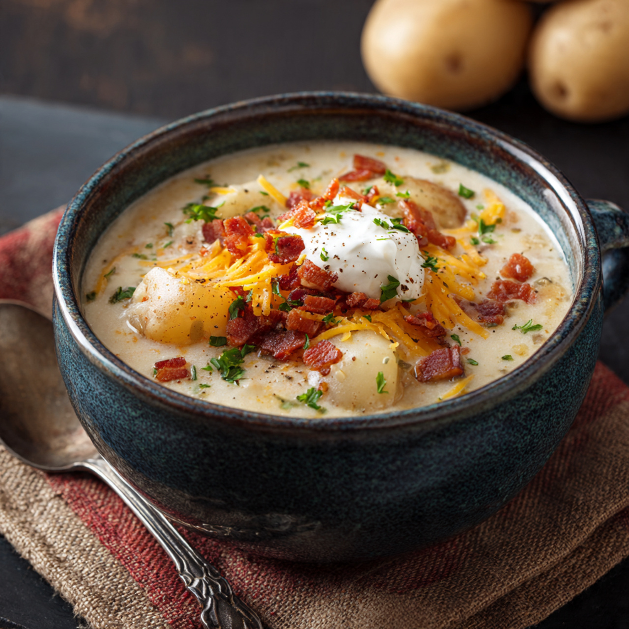 This soup has a rich, velvety texture thanks to slow-cooked potatoes and a creamy finish. Every spoonful feels warm, smooth, and deeply comforting.