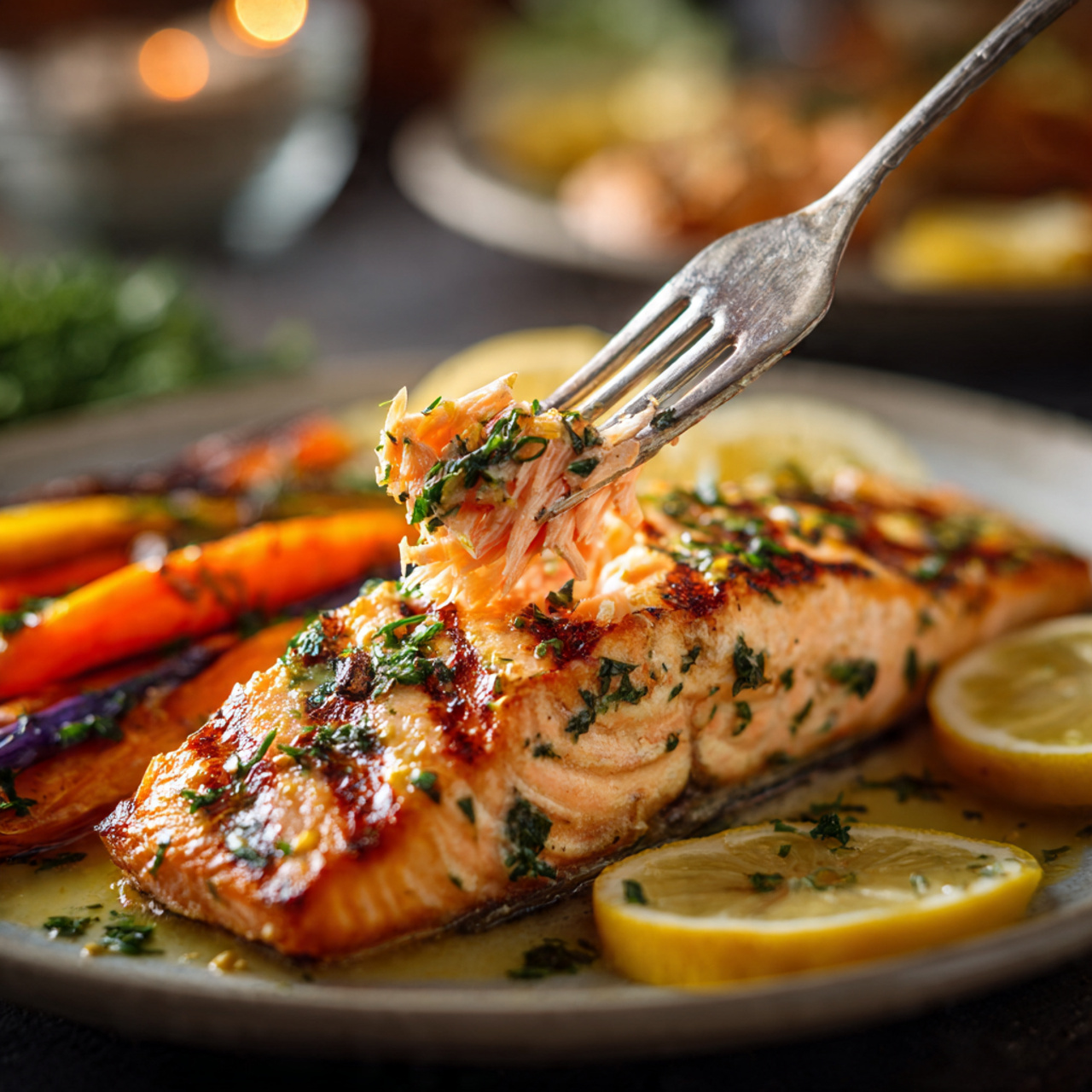 This recipe combines the natural richness of salmon with bright citrus, garlic, and herbs. The result is a savory, slightly smoky flavor that feels fresh and satisfying in every bite.