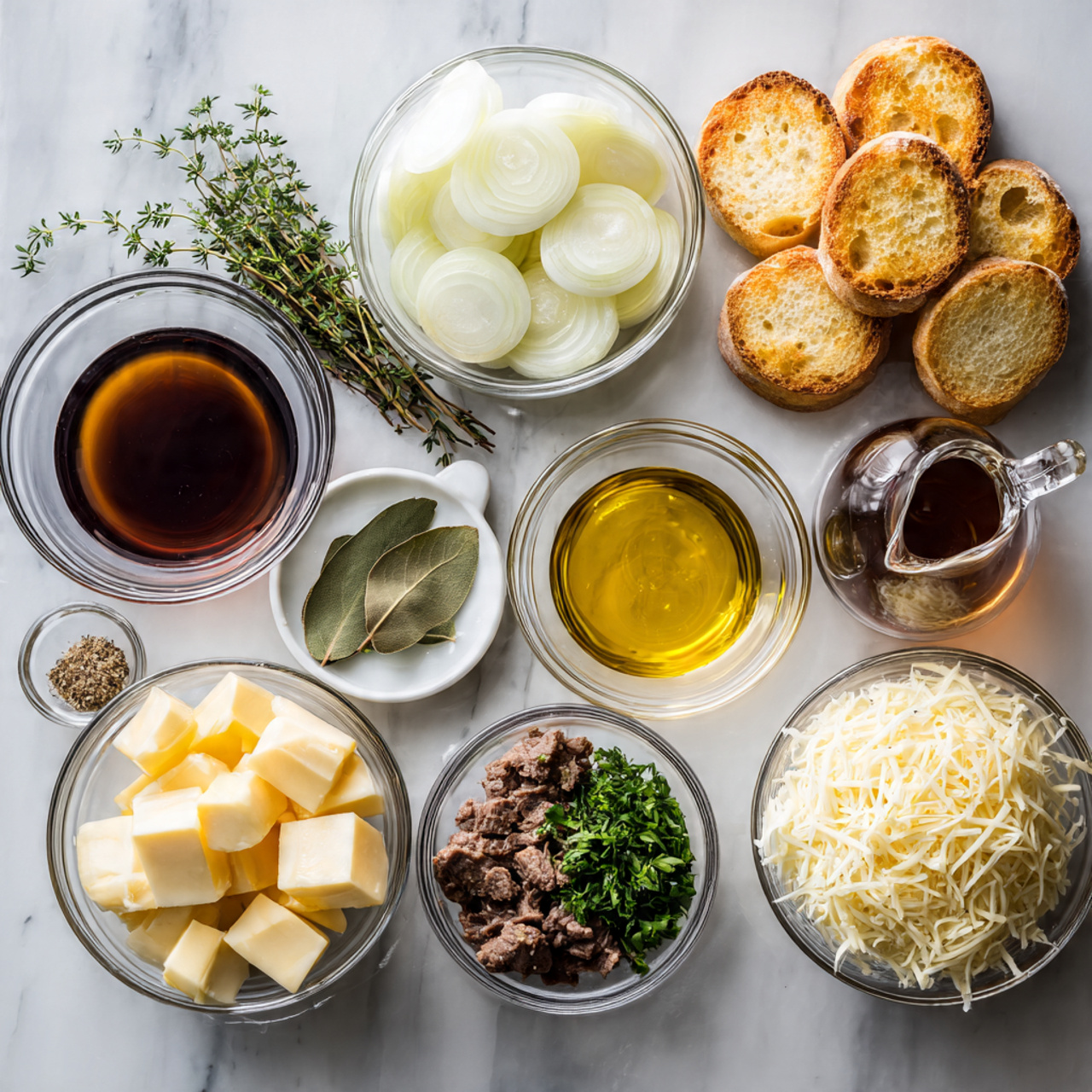 These ingredients come together to create a deeply flavorful soup with sweet caramelized onions, rich broth, and a cheesy golden topping.