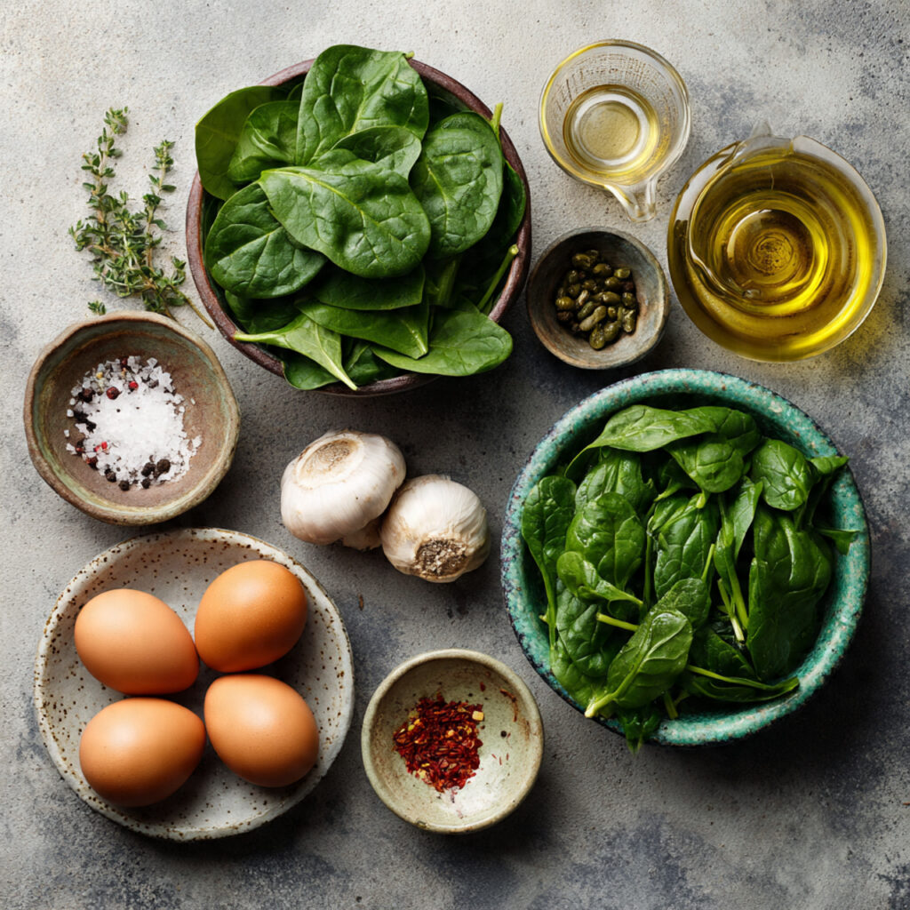 Fresh spinach leaves are essential for the best texture and flavor. Look for bright green leaves without wilting or yellowing.