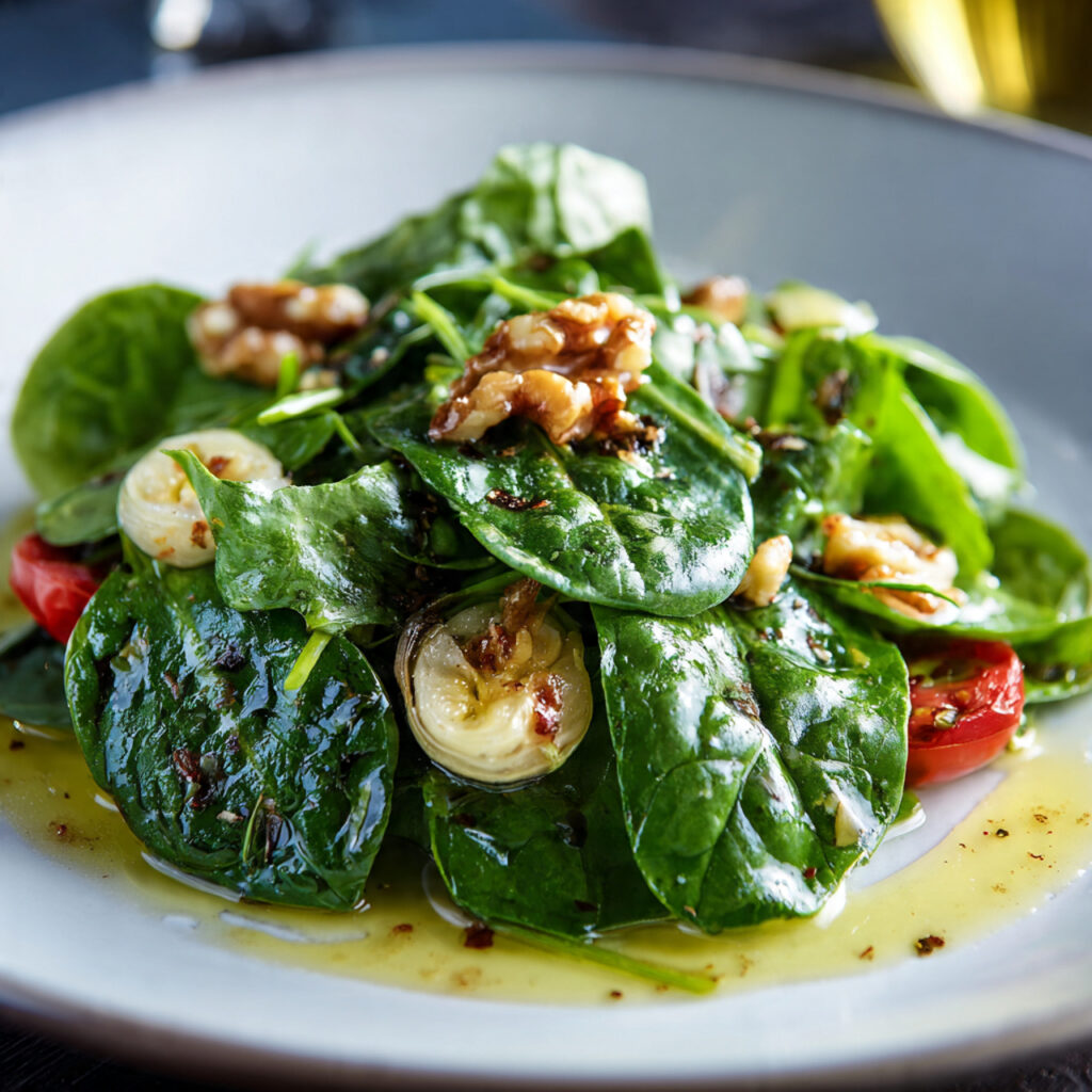 What makes spinach salad special is its versatility. It can be served simply with a light vinaigrette or enhanced with fruits, nuts, and protein for a more filling dish.