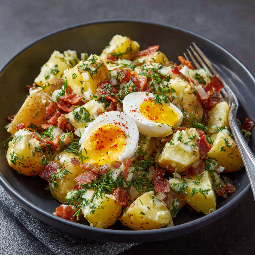 This salad is a favorite at family dinners, holiday tables, BBQ gatherings, and potlucks. Served warm or slightly cooled, it pairs perfectly with grilled meats, sausages, or roasted dishes. Its bold flavor and comforting texture make it stand out from traditional cold potato salads.