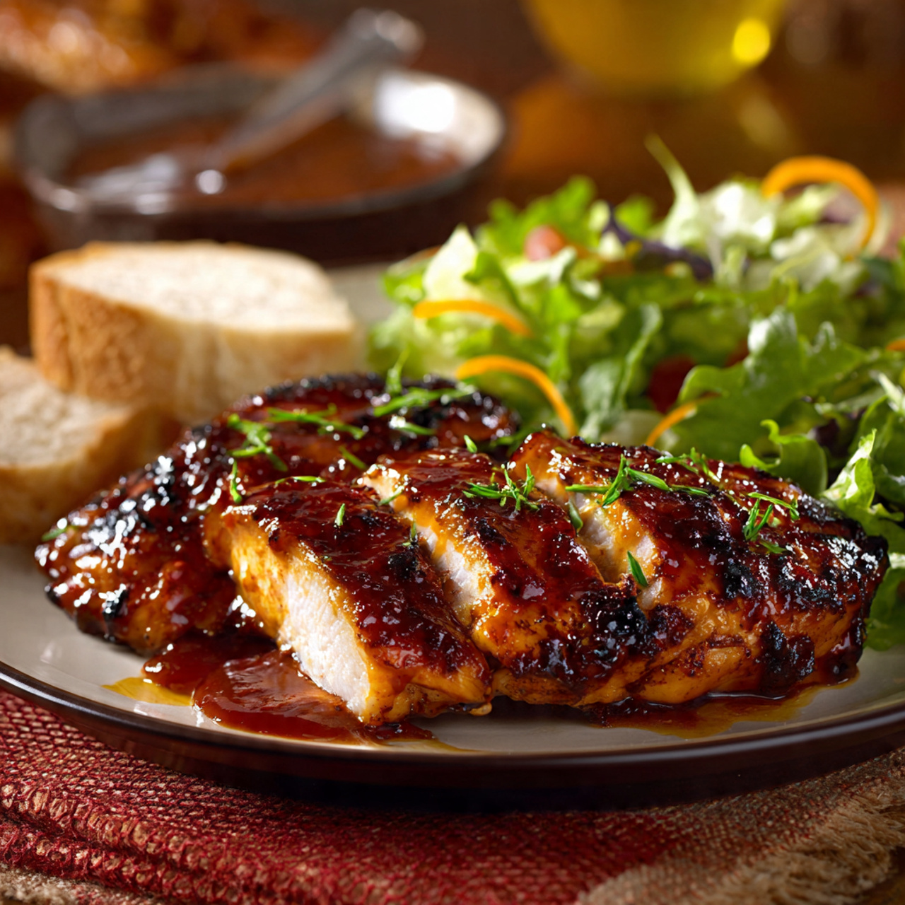 Brush extra BBQ sauce over the chicken during the last few minutes. Let it caramelize until glossy and sticky.