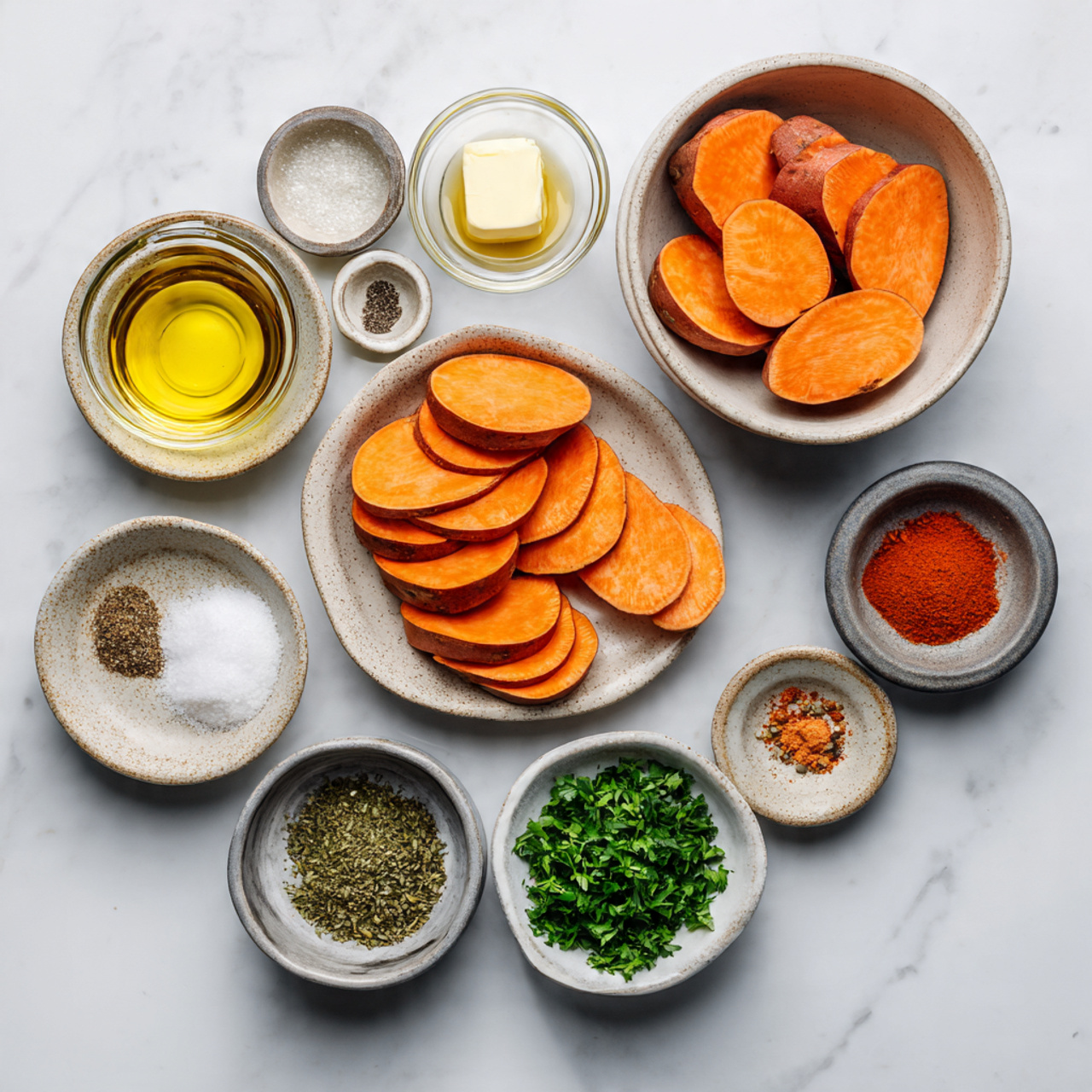 1. Slice sweet potatoes into even rounds.