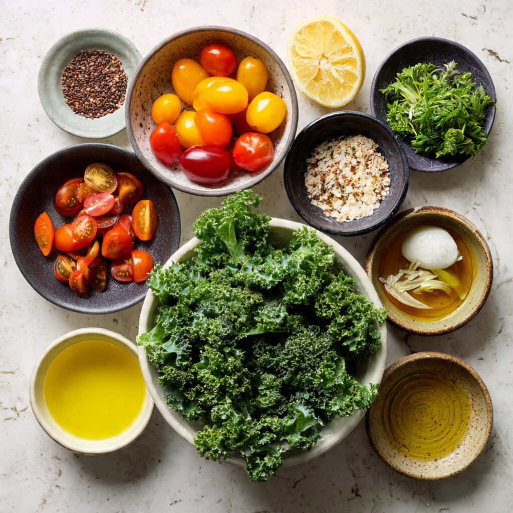 These ingredients create a nourishing kale salad where hearty greens and bright flavors blend beautifully.