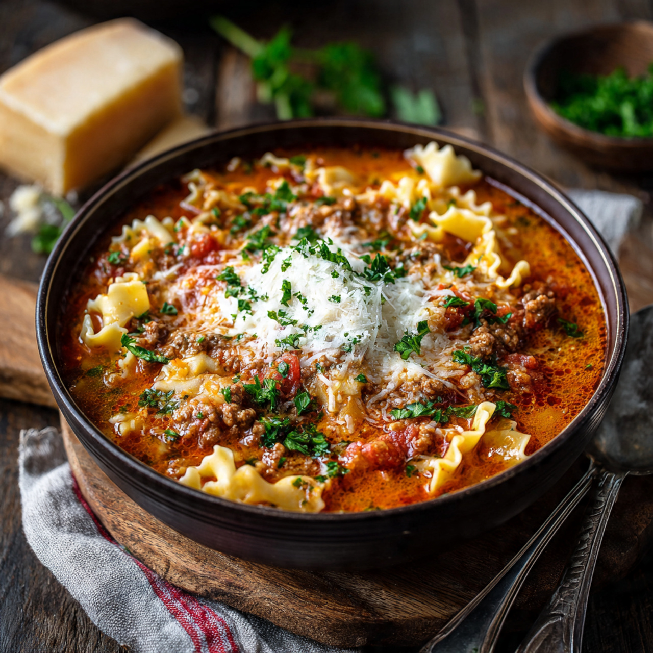It delivers the beloved taste of lasagna but in a unique, comforting soup format that feels both nostalgic and exciting.