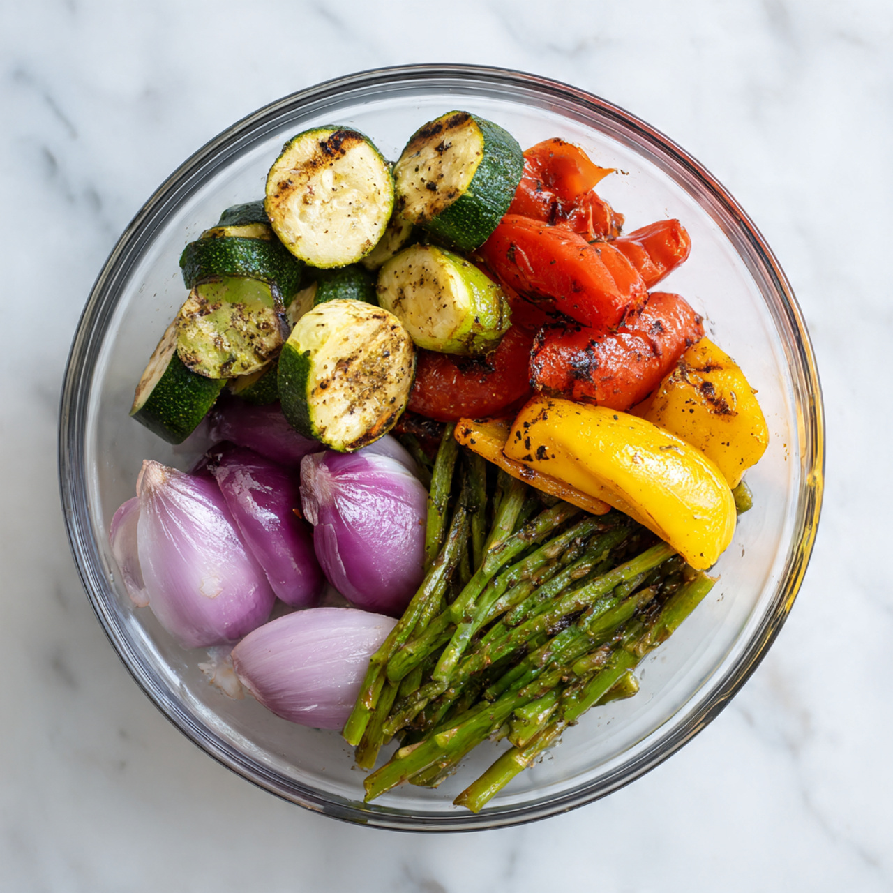 - Grill vegetables 3–5 minutes per side until tender and lightly charred.