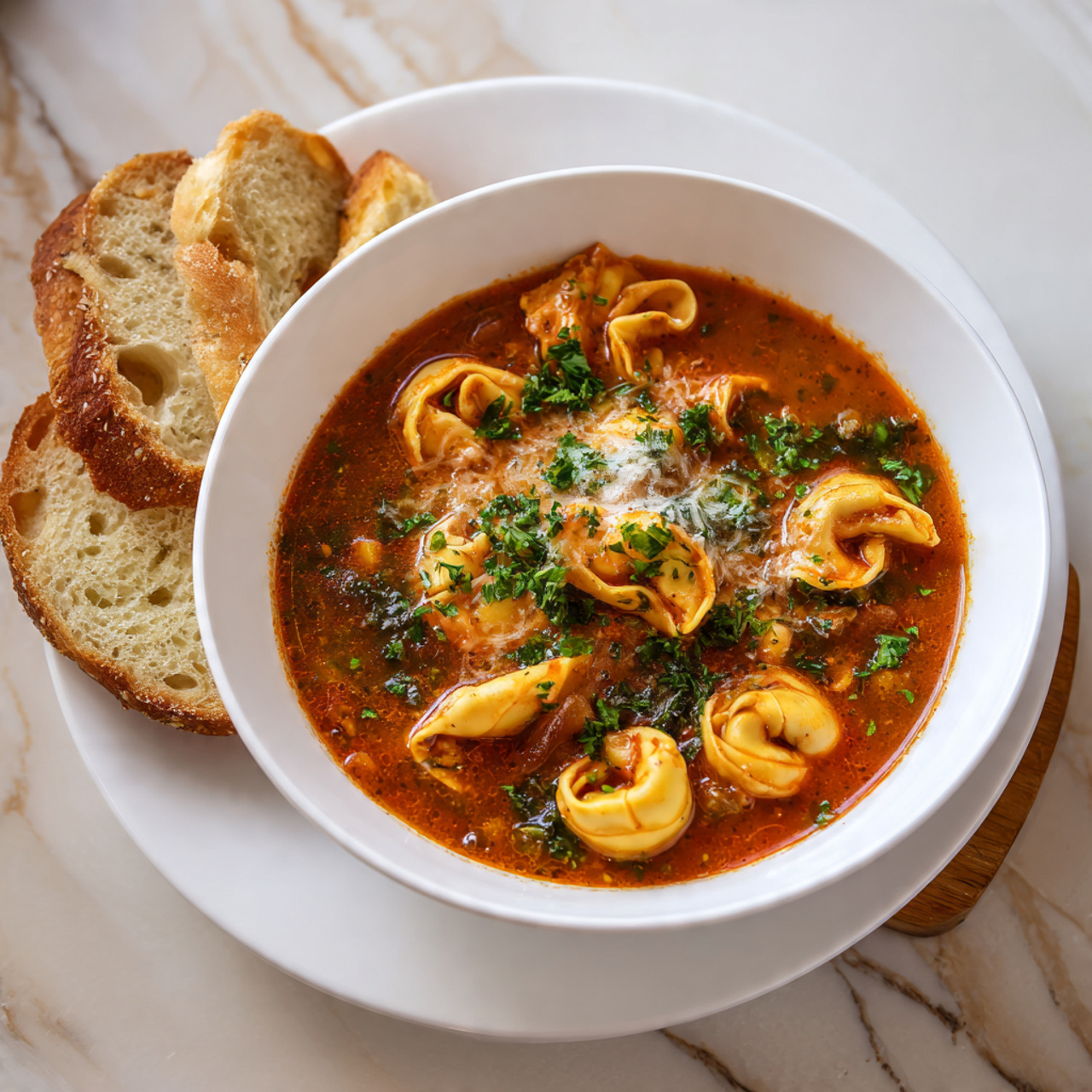 Soft tortellini, tender vegetables, and a silky broth create a wonderful contrast of textures. Each bite feels hearty yet smooth and comforting.