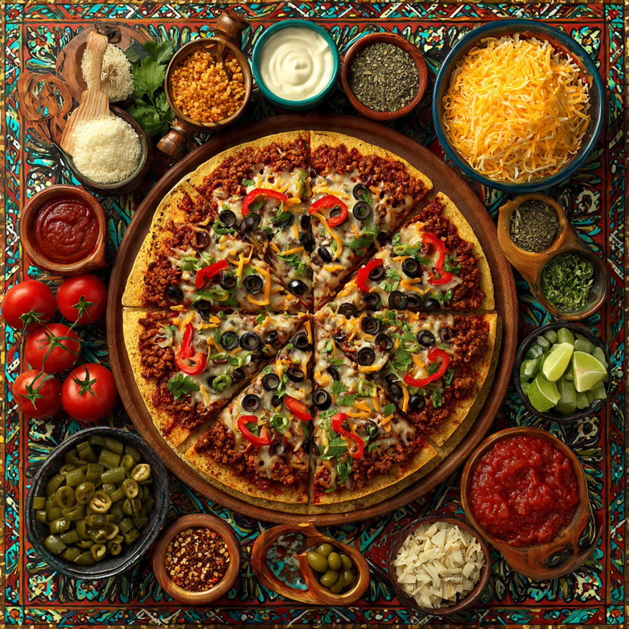 You still get gooey cheese, rich tomato sauce, and savory toppings—but the tortilla crust adds a fun, crispy twist that makes this recipe unique.