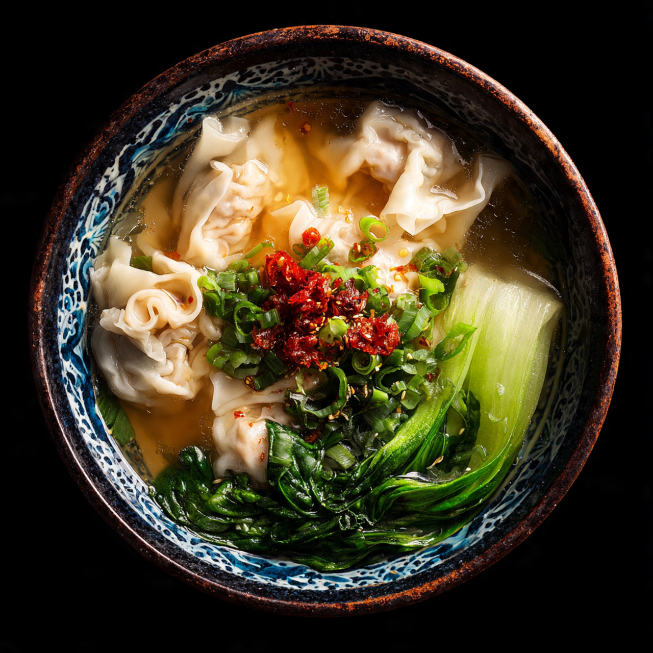 The broth is savory, slightly garlicky, and gently seasoned, perfectly complementing the juicy filling inside each wonton.